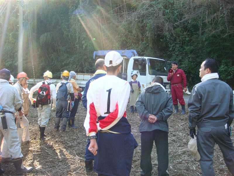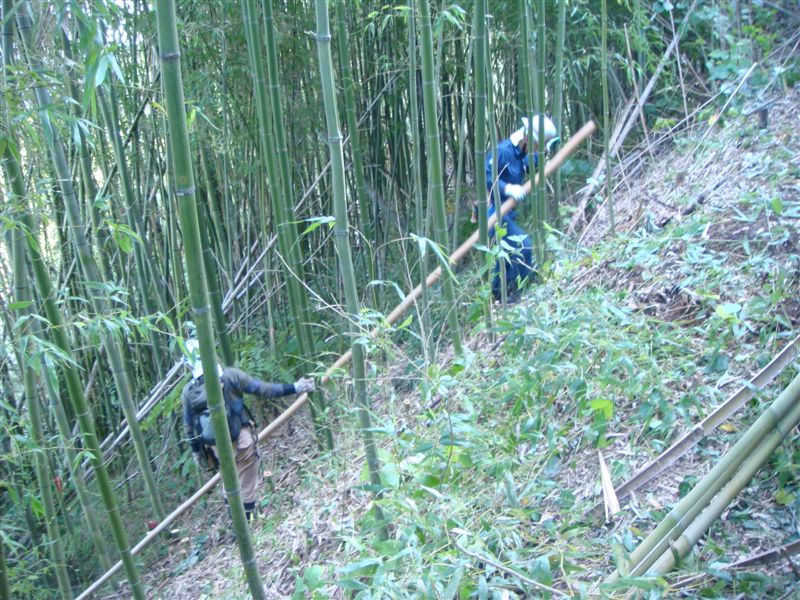 そして作業開始です。A,B,C,D,E班に別れ道路沿いの密集した竹を間引きして道路から海が見えるようにします。