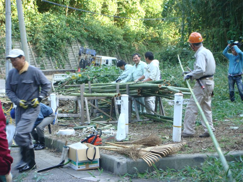 休憩しながら最後の片付けに入ります。竹を束ねるのも結構な力が要りますね。大きな怪我も無く無事作業を終了しました。