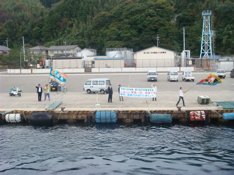 船影が見えなくなるまで大漁旗を振ってのお見送りに感謝です。
