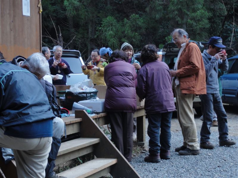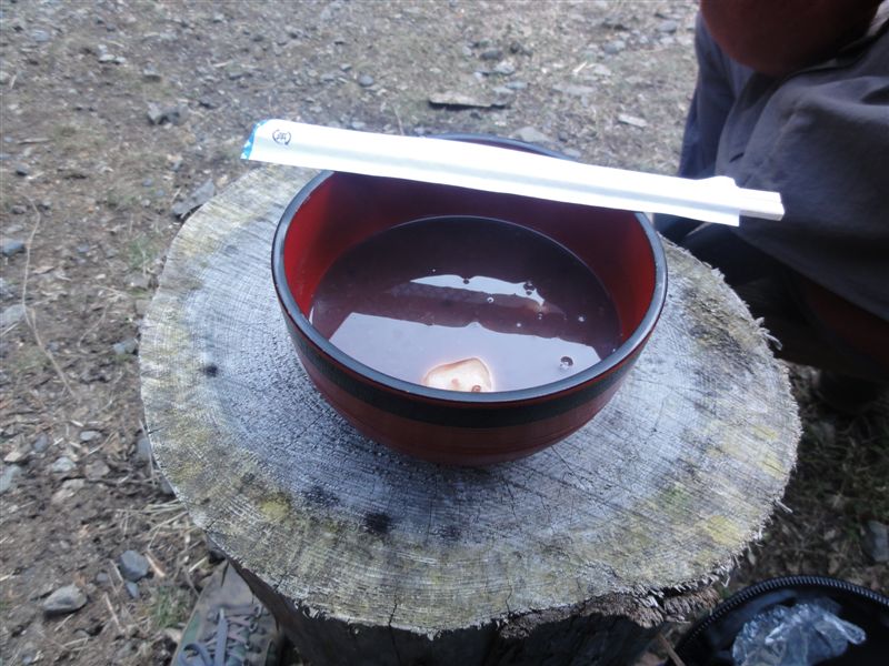作業終了後にベース基地へ戻るとキッチン班のスタッフがお餅入りのお汁粉が準備してありました。
