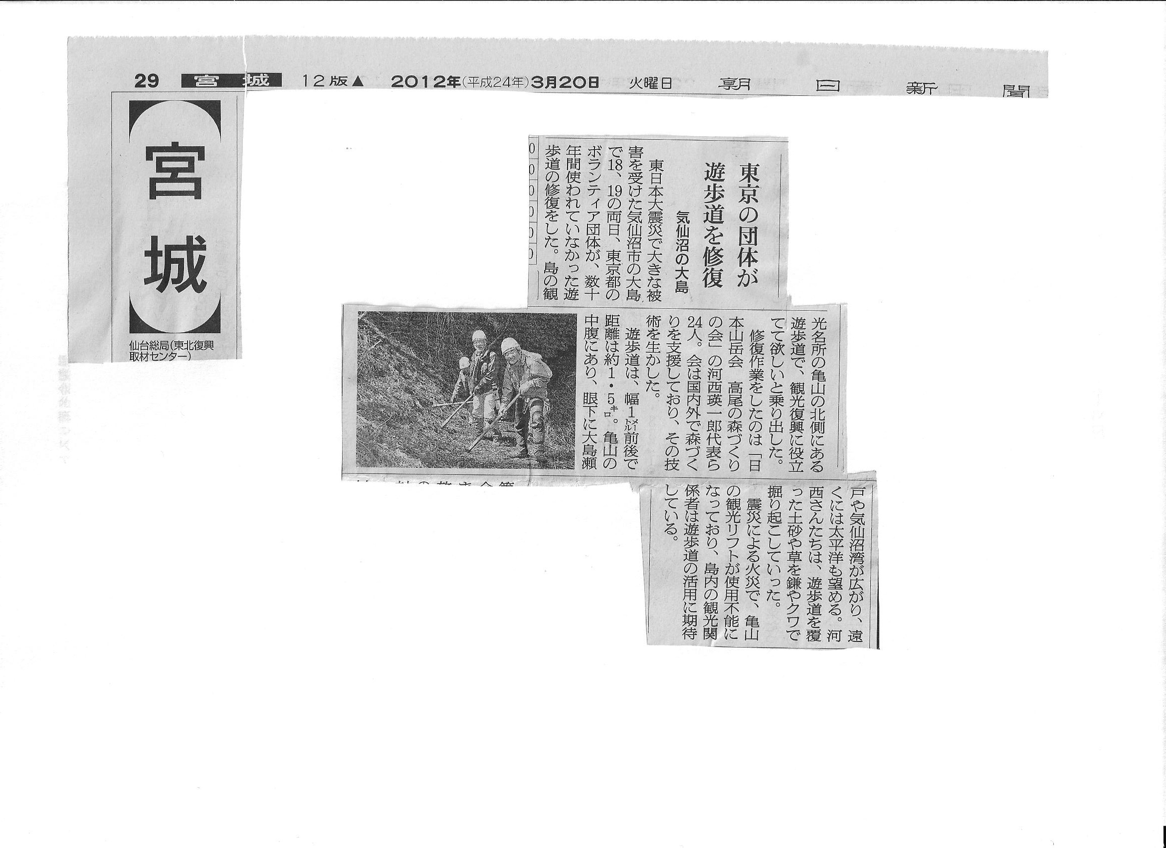 - 2012.03.22 気仙沼大島のボランティア活動が新聞に掲載された