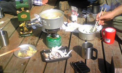 わお~、桜の木の下で、てんぷらですか~~。