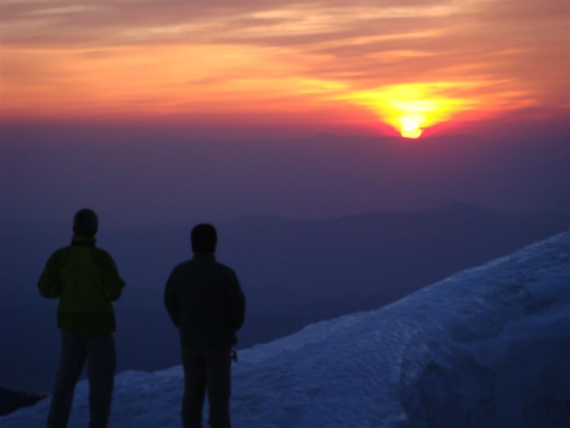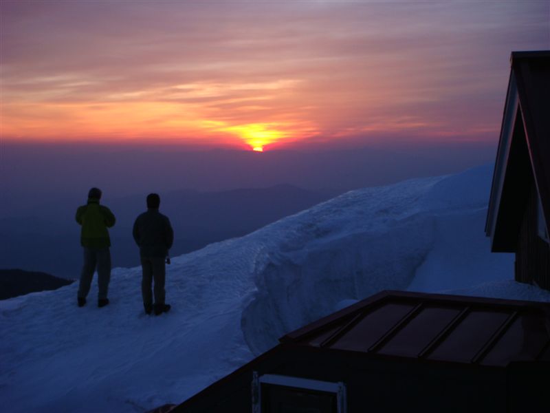 5月3日 4:00に目が覚めたので日の出を見ることにした。寒いがマイナス2度程度でありなんとか我慢して日の出を待った。登ってきました。