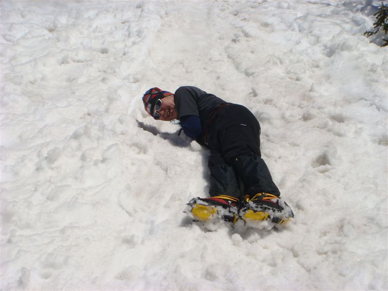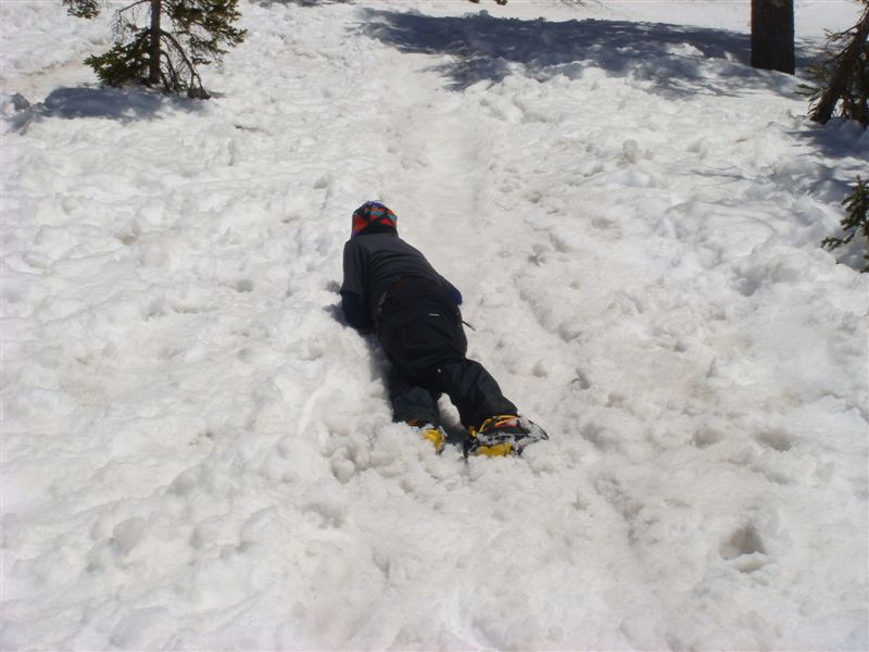 最後に合戦小屋手前の斜面でピッケルで滑落停止の基本を練習してきました。