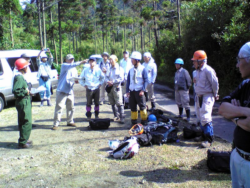 旧火口に降りて行き作業開始です。