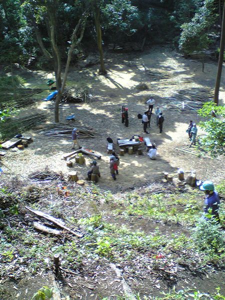 ササを中腹から切り出しては下へ槍投げの要領で落としていきます。単純な繰り返しでつかれます。なかなか笹薮が小さくなりませんが皆んな一生懸命でおえありの頃には90%は終わったでしょうか。あとは地元の森林組合の方達で後日終えるそうです。