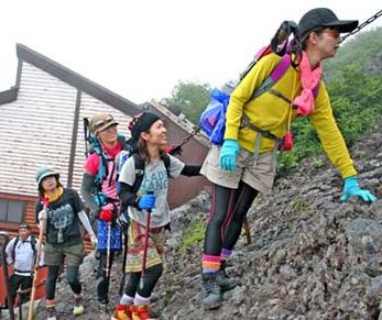富士山に続々と山ガール