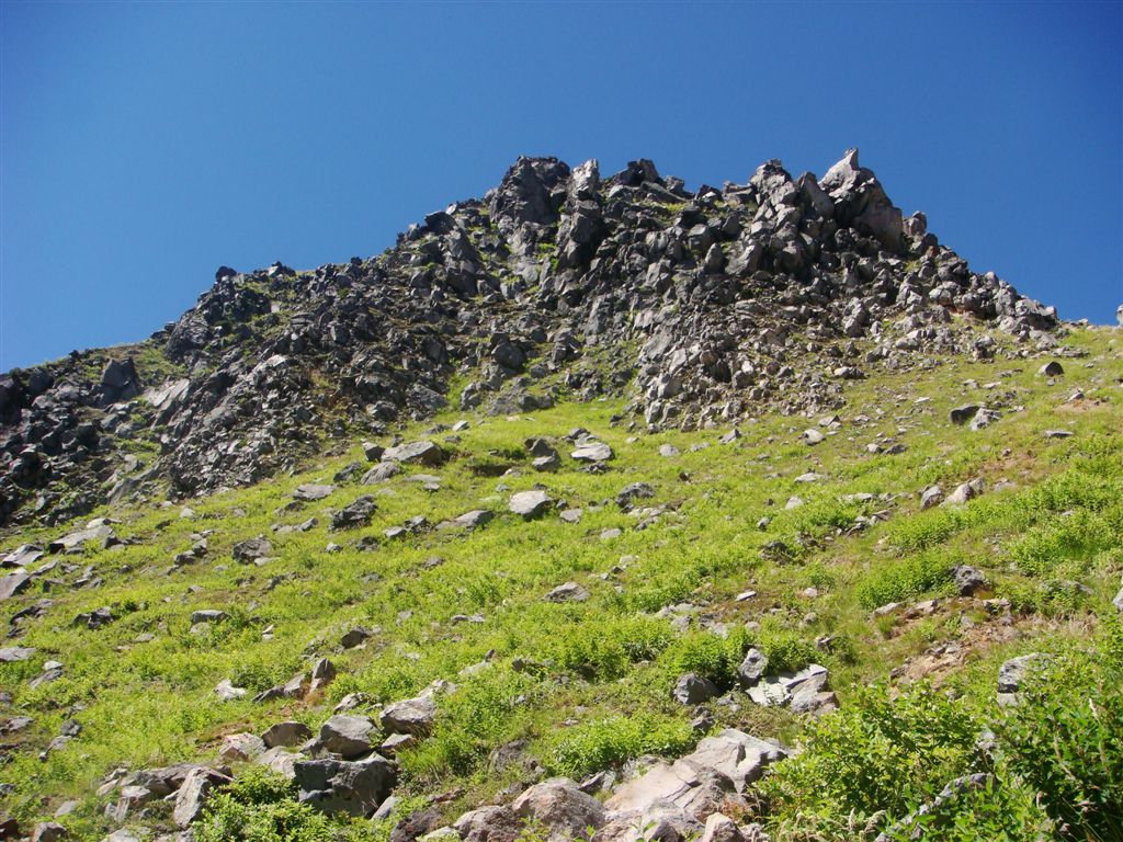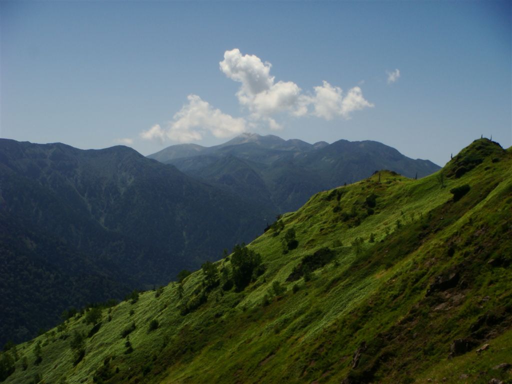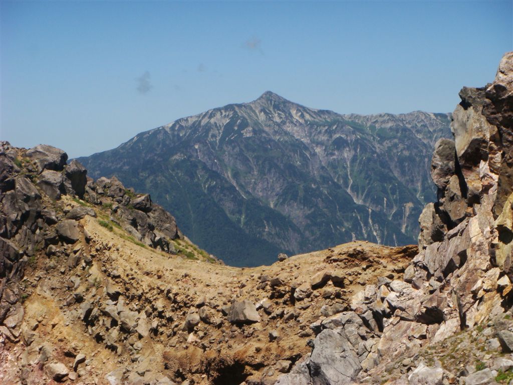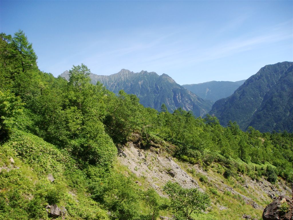 新中の湯登山口から登り視界が開けてきた新道出会いあたりからの焼岳です。