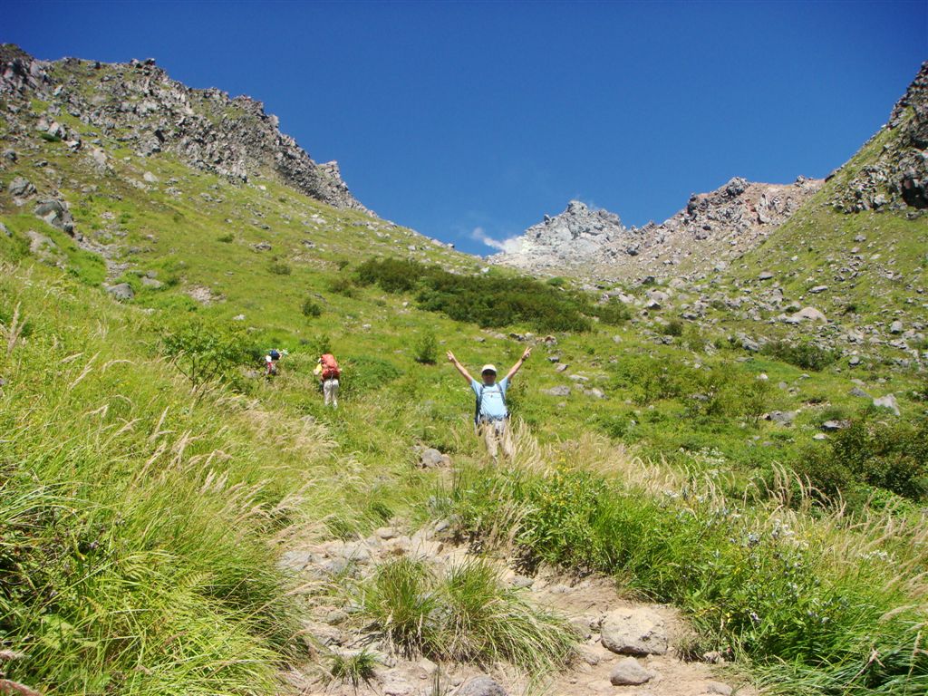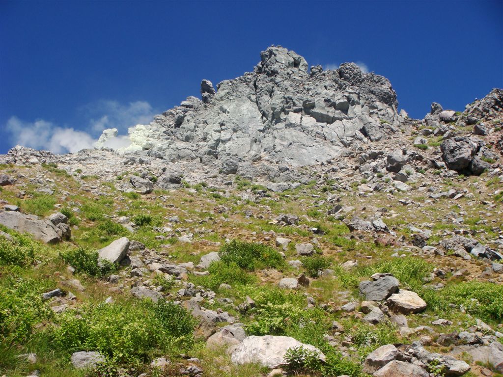 北峰を上るすぐ横には硫黄ガスがしゅ~~シュ~と音を立てて噴出しています。