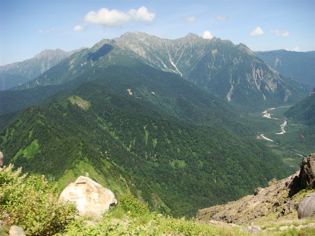 山頂からの眺めです。西穂山荘、独標、西穂から槍まで見えますね。
