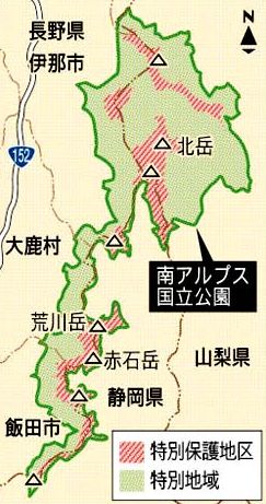環境省は貴重な固有種が集中しているが公園に含まれていないために保護体制ができていないケースなど、 重要な生態系を保全する観点で候補地を選定し、名古屋市で今月18日から開かれる生物多様性条約第10回締 約国会議(COP10)に向けて政府の積極姿勢をアピールをするためにも国立/国定公園の拡張を進めるようだ 。全国の国立・国定公園のうち、長野、山梨、静岡3県にまたがる南アルプス国立公園などの自然保護のため に拡張が必要とする候補地12カ所と、奄美群島など新規指定の候補地6カ所が公表された。南アルプスは日本 列島の形成過程が反映された雄大な山脈で、氷河期の地形が存在すると位置付け、植物や高山チョウには固 有種が多いほか、植物は照葉樹林帯から高山帯までの垂直分布を見ることができると評価している。新規指 定の奄美群島、やんばる、慶良間諸島沿岸海域は現在の国定公園を含む地域を国立公園に、由良川・桂川上 中流域(京都府)は、国定公園に指定することで調整中、道東湿地群(北海道)は、新たに公園に指定する か釧路湿原国立公園を拡張し、日高山脈・夕張山地は国立公園に新規指定か国定公園を拡張するようだ。 乱 開発の前に自然保護を進めてもらいたいですね。