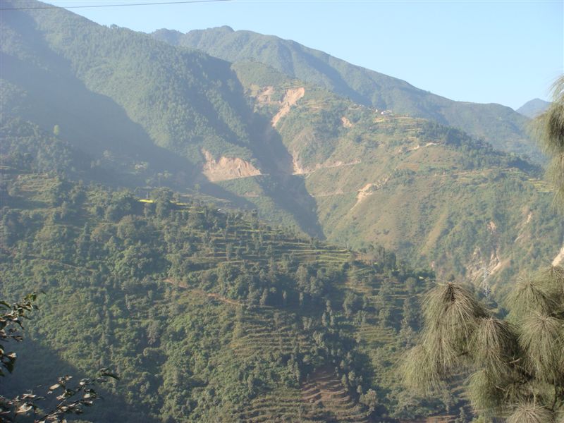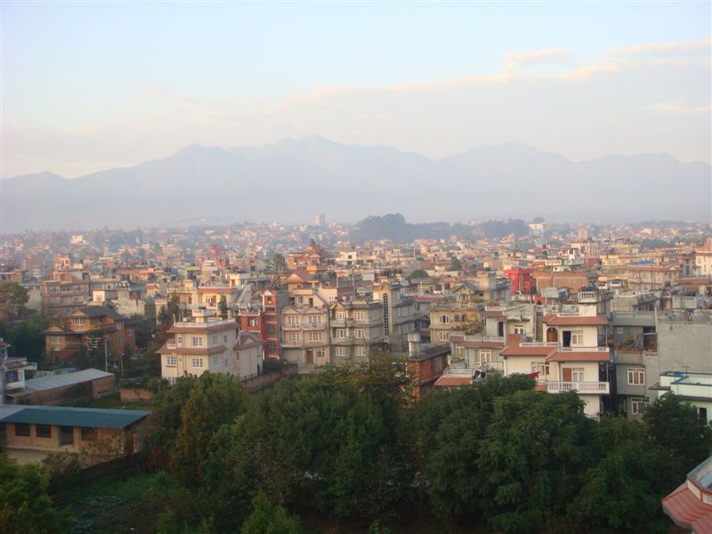 5時間ほど眠って6時に起き、6:30のベランダからのカトマンズ市内の風景です。スモッグなのかはっきりしない空模様です。