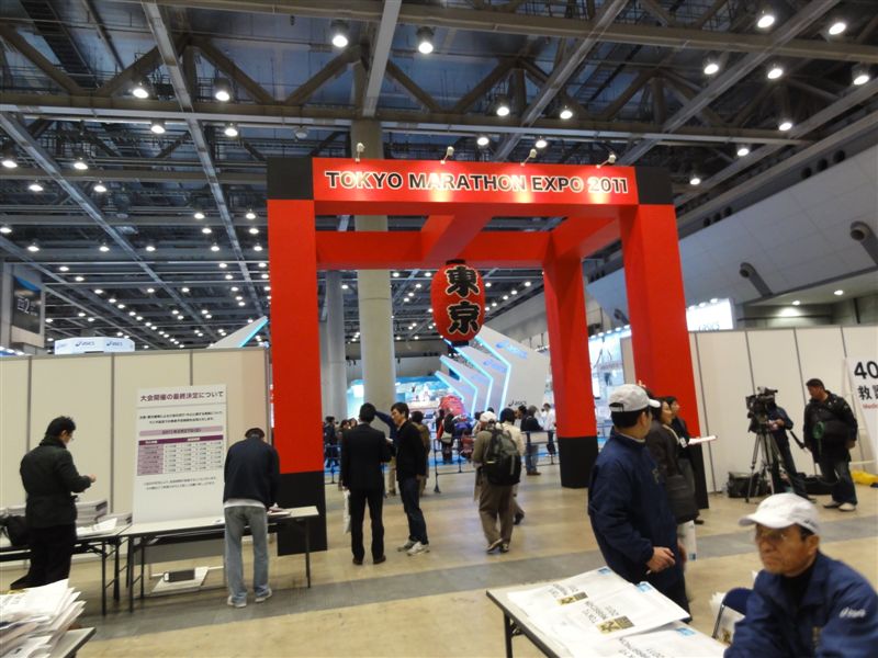24日から東京ビッグサイトで東京マラソン2011の受付が始まり初日に行ってきたがEXPO会場で優勝トロフィーをもって写真を撮るコーナーがあった ので撮ってもらった。ほかにフィニッシュのテープを切るコーナーもあったがこちらにしたがとてもトロフィーは重く片手であげているがけっこう つらかったです。