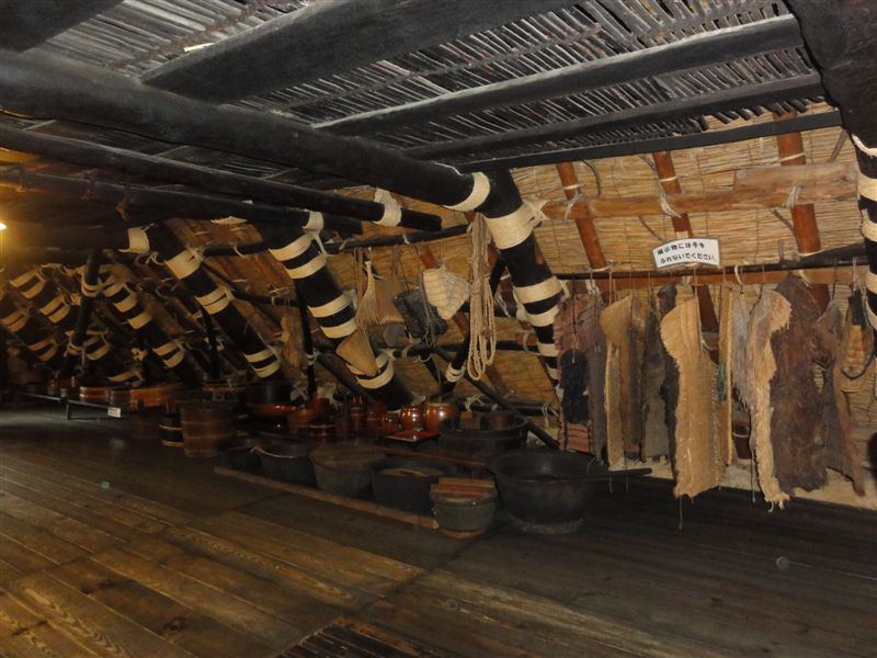 2階にあがりました。1階の梁の太さにはびっくりしましたが茅葺屋根を支えている柱の太いです。