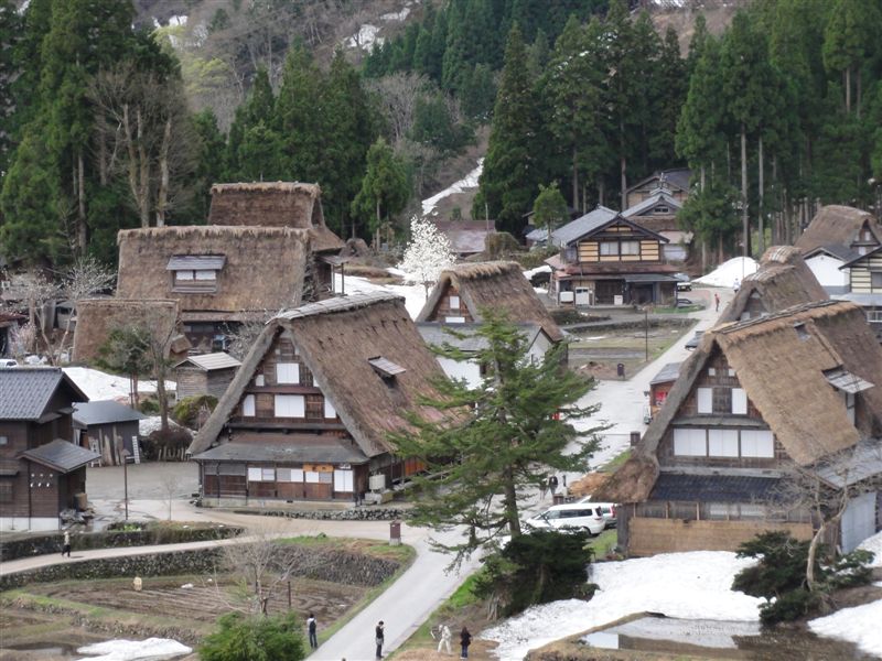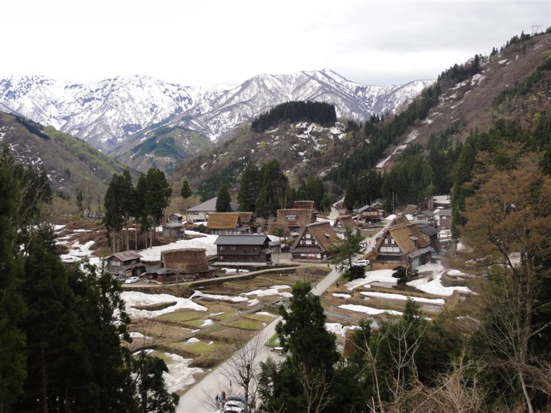 相倉集落では集落全体を見渡せる場所に行きバックに雪山、残雪のこる合掌作りの集落が楽しめました。観光客が少なく落ち着いた雰囲気でゆっくり出来ました。