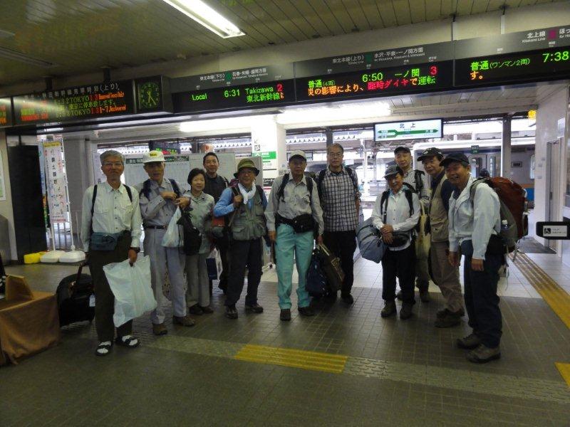 大人の休日倶楽部が期間限定で4日間JR東日本のり放題のチケットを利用して北上の夏油温泉の湯治部へ宿泊し焼石岳登山や歴史探訪組、 観光旅行組、登山後気仙沼でボランティア活動する組と多彩なメニューで24日から27日まで総勢19人の大パーティで出かけてきた。今日は そのダイジェスト版でレポします。 左の写真は北上駅に集合したメンバーである。