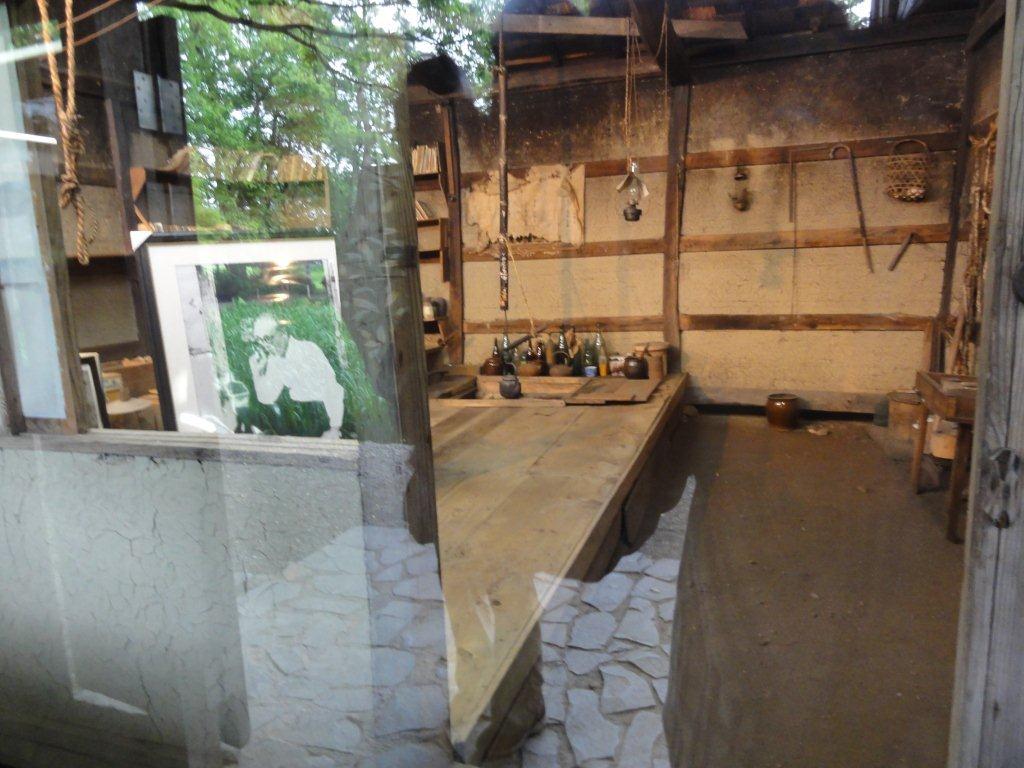 覆堂を入るとガラス越しに山荘を見ることが出来湯治の住まいの状況などが見れ説明が自動的に流れてきます。