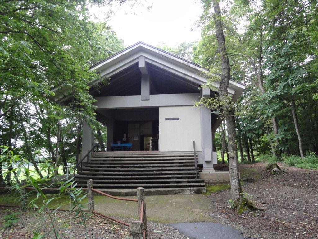 山荘には覆堂が立てられていて(中尊寺金堂みたいです)この建屋の中にあります。