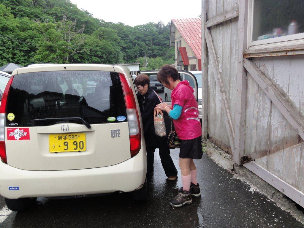 夏油温泉に戻るとちょうど経塚山からずぶぬれになった三人が下山してきたところでした。まづは一風呂ということで温泉につかり16:45発の路線バスで帰京する専属カメラマン(昨日までの日記で覚えてますよね)を見送ることにしましたが・・・・
