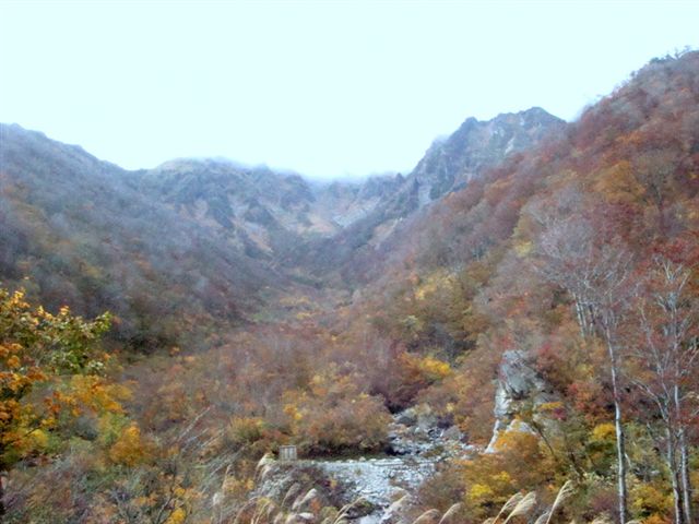 74cbb868jpeg天気がよさそうなので谷川岳の紅葉を見に出かけた。今週を逃すともう今年はだめだと思い6時に家を出発し一路谷川だけへ向かい9:30には到着した。頂上付近は雲が多かったが一の倉のほぼ全容が見渡せた。紅葉真っ盛りで雄大な景色を堪能した。かつて遭難が多かったこの沢も見事な紅葉で遭難者の霊を静かに見守っていることだろう。