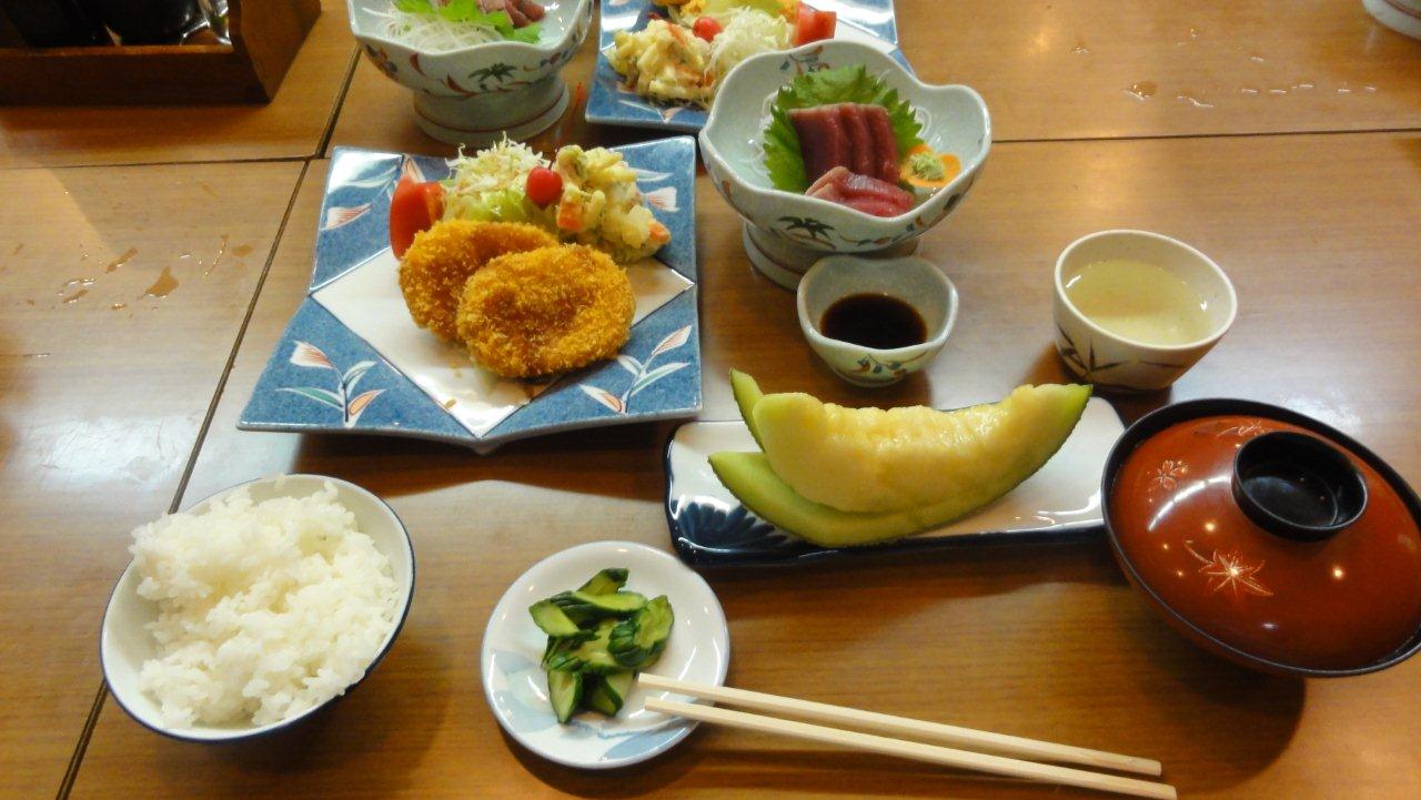 災害ボランティア価格で1泊¥5,000.-で宿泊させていただいていますがボリュームのある夕食です。