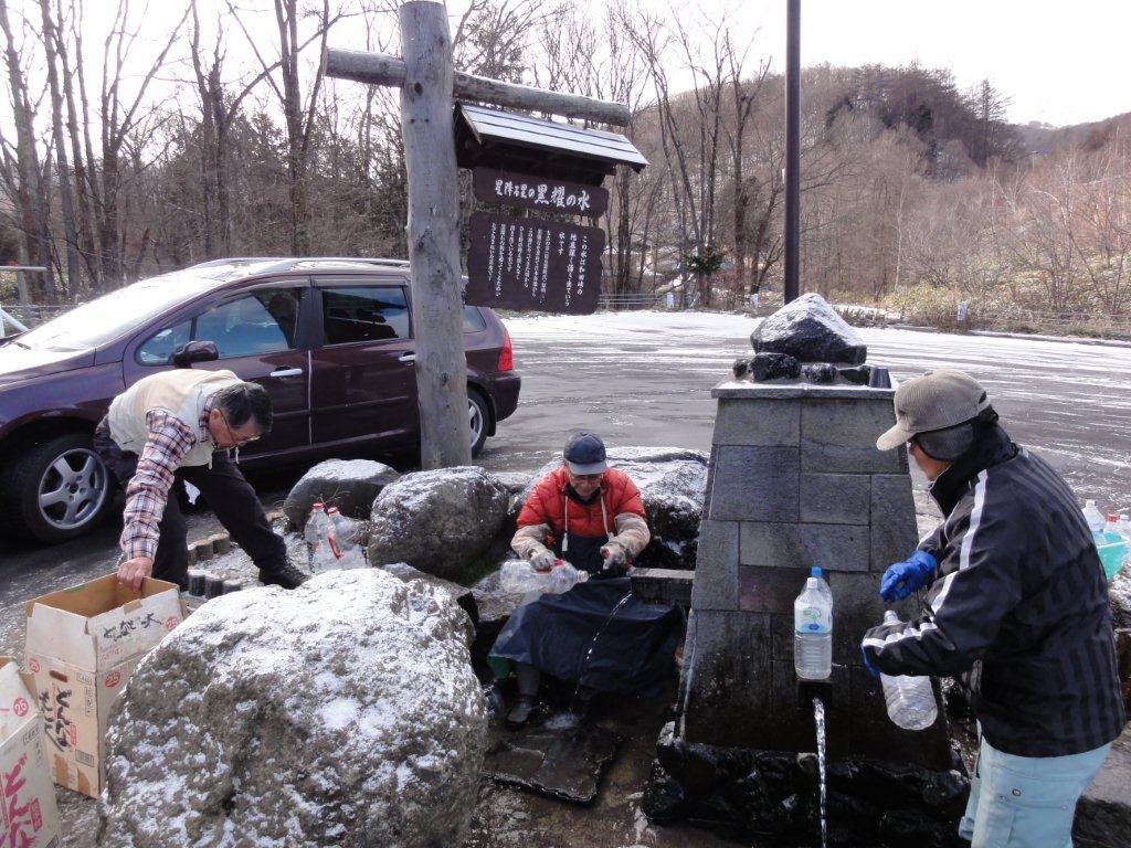 新和田トンネル有料道路料金所をでたところに黒耀石によってろ過された水の湧き出す「名水広場」があります。黒耀水です。 (信州・長和町観光協会の公式サイトはこちら) 山友M氏は何時もここで水汲みをしていきます。おいしい水なので多くの人が汲みに来ています。