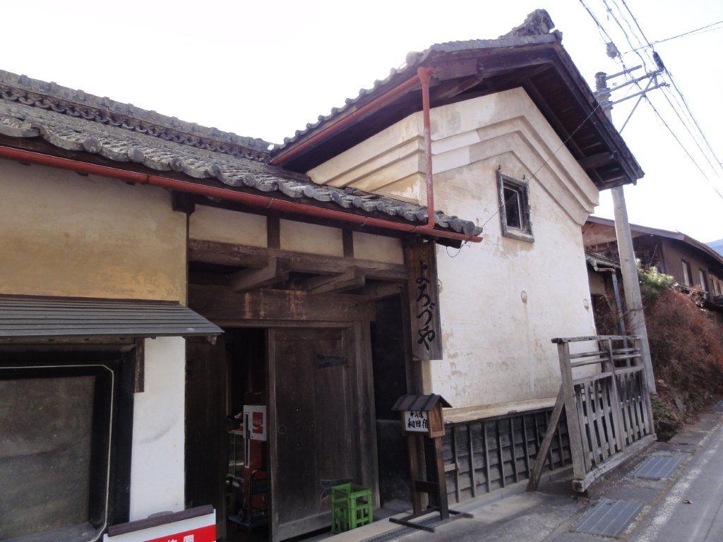 当時の外観を残している雑貨屋さんでお酒を購入していきます。道の駅に寄っていたら名古屋組の車と遭遇、そして雪道になったとこ ろでもう一台の名古屋組の車がチェーンを着けているところに遭遇しました。そして車組はそろって山本小屋を目指していきました。電車・バス組予定通り11:30 ころには到着しました。
