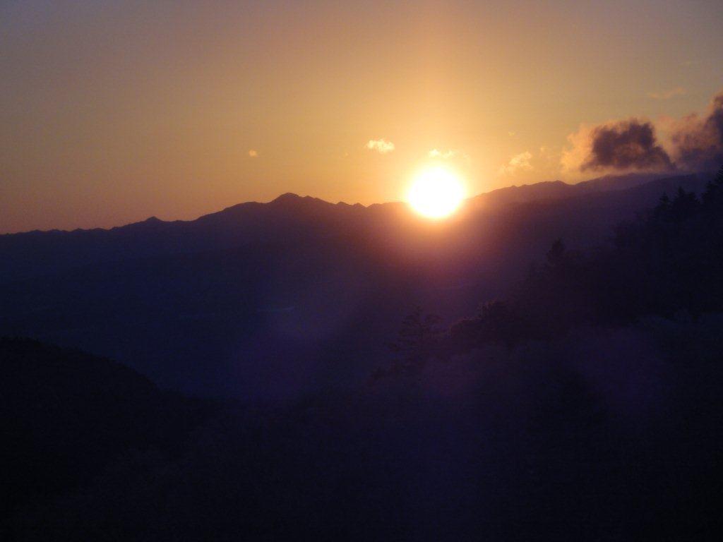 そして18日6:00起床でご来光に備えます。日の出は6:45くらいですが早めに外に出て準備です。真っ赤に空が燃えてきましたが残念なことに八ヶ岳には雲がかか っていました。