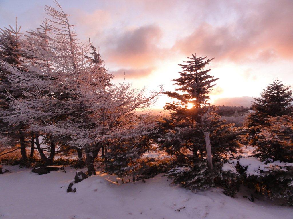 それでも日の出と周りの樹氷が赤く染まっていく景色を-9度の寒さを忘れて堪能し ました。