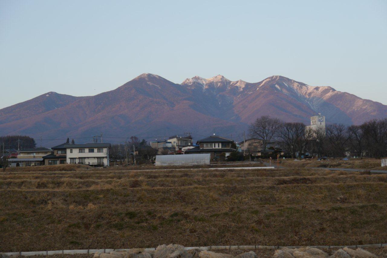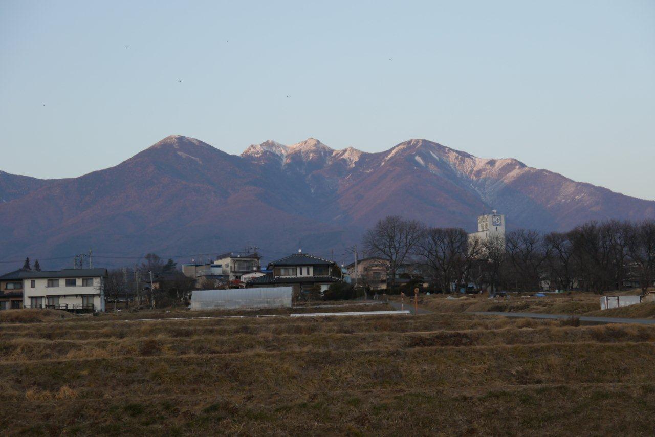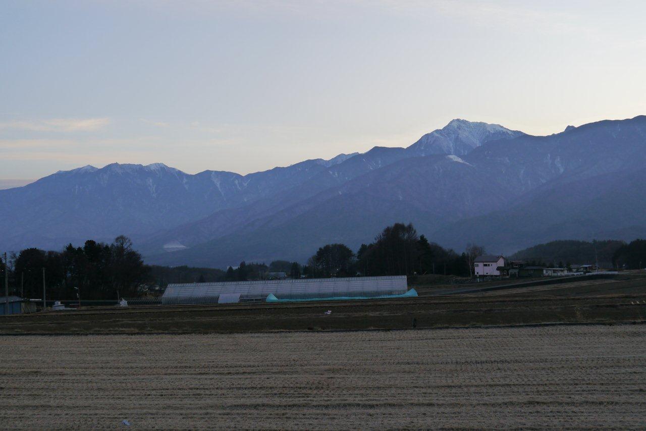 帰るときには夕日に映える八ヶ岳がきれいだ。