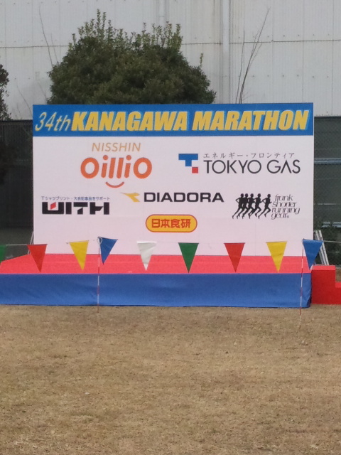 昨日2月5日に神奈川マラソン(大会HPはこちら)の10Kmの部で走ってきた。日差しが無く風は無いものの寒い日でした。60歳以上10Kmの部の受付は並んでいる人も無くゼッケンをもらって準備開始です。