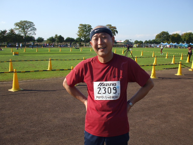 昨日の初マラソンの疲れは残らなかった。普段のトレーニングの結果が出たのだと思っている。誘われた方の話ではもっと毎日走りこんでいけばタイムはすぐにあがるといわれたがなかなか大変な競技だと思った。東京女子マラソンでは大会新記録で野口さんが優勝したがその走りを見るとものすごいなと思う。走ってみたわかった事だが背筋力が重要なことがわかった。10Kmを過ぎる頃から腕の振りが鈍くなりそれと供にスピードが落ちてきたのが判った。体全体の筋力UPをしないとスピードは上がらないことが良くわかった。が・・・次回の青梅マラソン10Kmまでに鍛えられるかどうか。写真は着替えを済ませいざスタートの写真です。ゴール後の写真は・・・