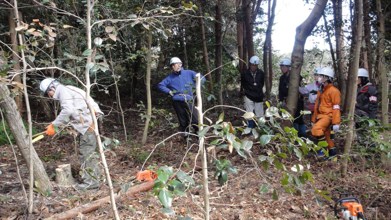 気仙沼大島復興支援ボランティアのレポ3 昨年11月に調査した亀山への登山道・遊歩道の本格的整備と椿祭りが開催されている椿の山の整備を行ってきました。