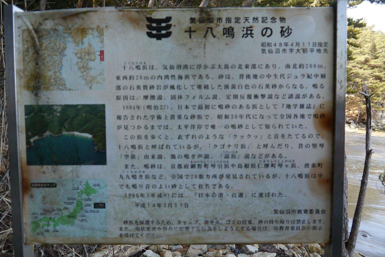満潮後で砂が湿っているのと潮騒で鳴っているのかいないのかわかりませんでした。地盤沈下で浜の奥のほうまで波が打ち寄せてしまっています。