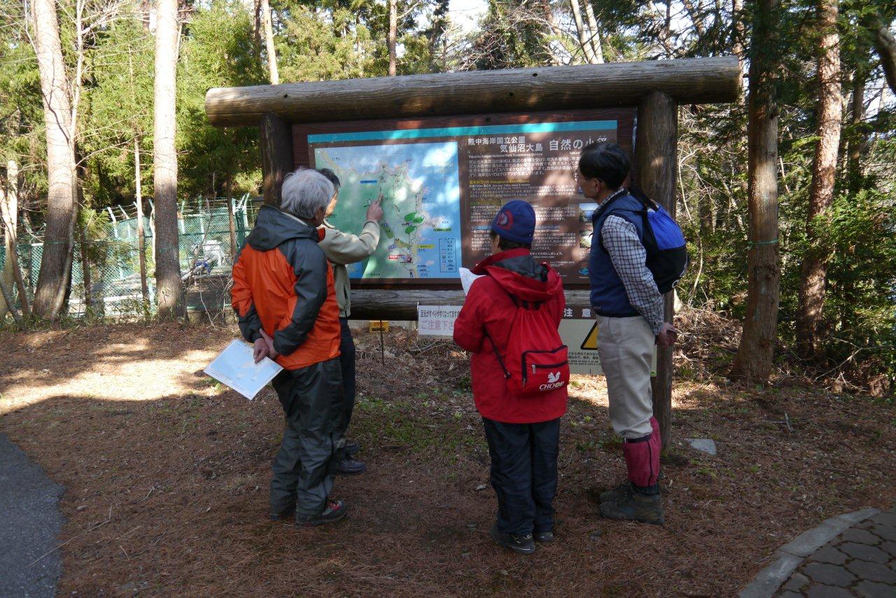 国民休暇村の遊歩道整備は環境省が主導で行っているが完成後から手入れが行き届いていないので木々が荒れているようなので今後の整備のために見て意見をくださいとのことでいちばん使われているコースを歩いてみました。