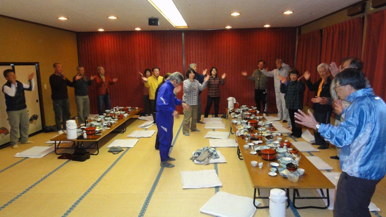 そして最後の夜の夕食で作業打ち上げの一本締めをしました。