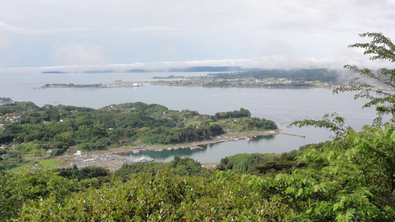 今日は晴天です。山頂から気仙沼大島全体が見渡せます。何時来てもきれいな島の景色です。