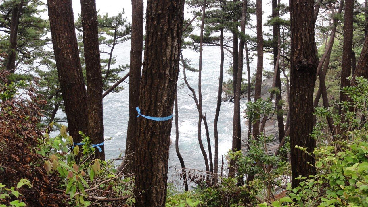 私は会の代表と記者を案内するために龍舞崎での黒松伐採現場に行きました。