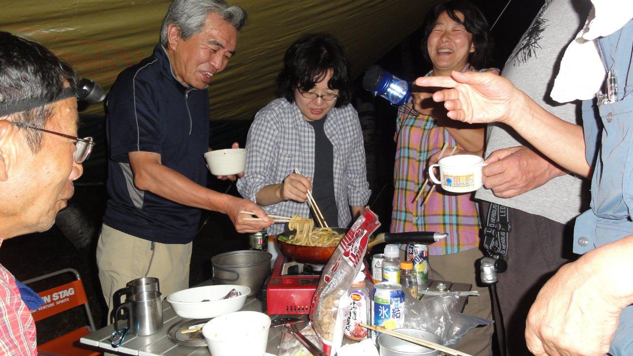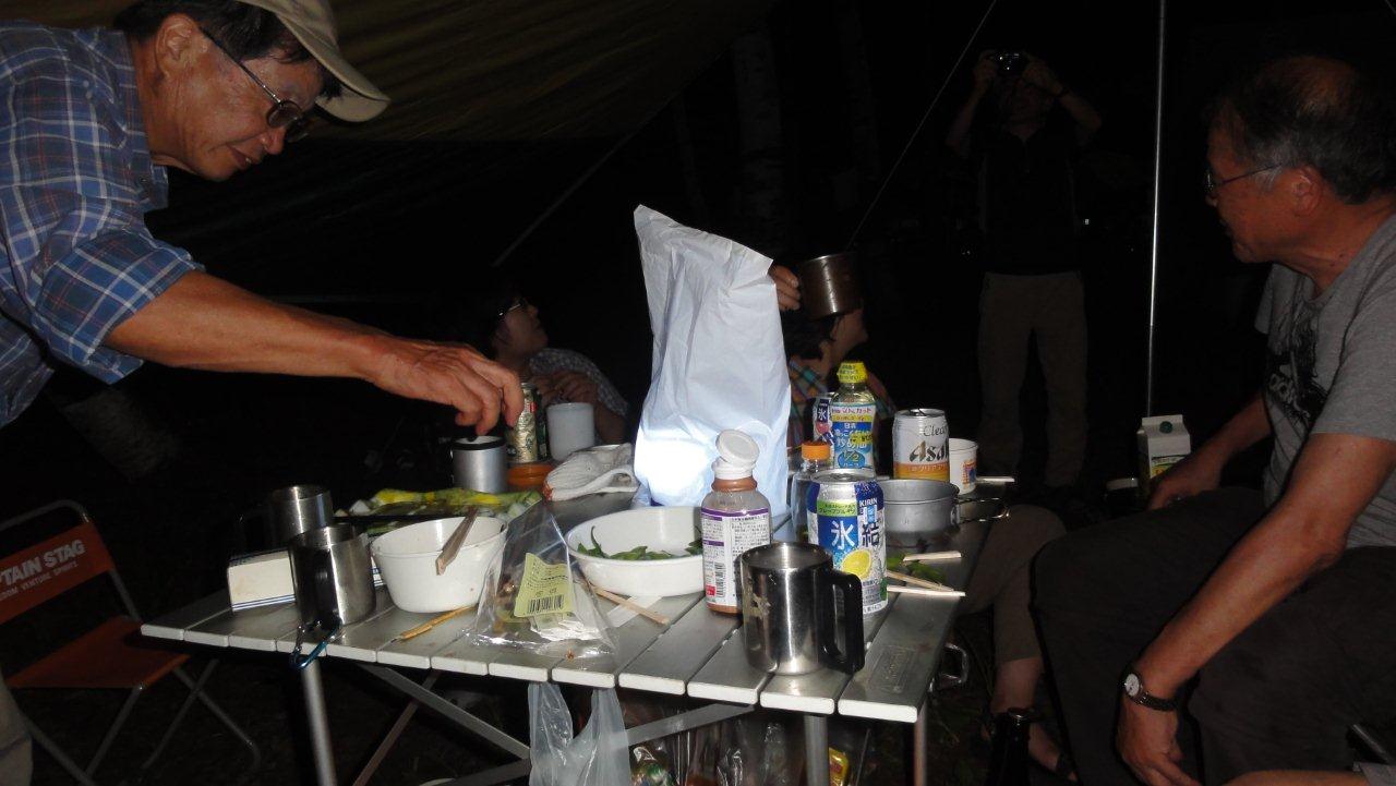 食材担当と料理担当ありがとう御座いました。21:00を過ぎましたので明日の登山を控え早めにテントにもぐりました。19℃で涼しいので快適でした。