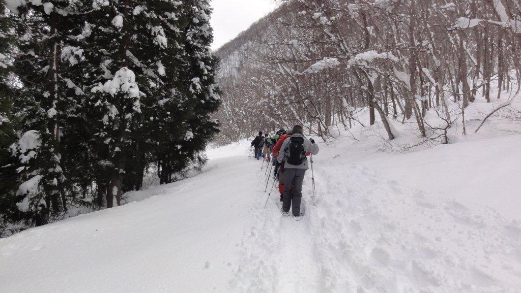 ゲレンデから離れて山道を歩いていきます。