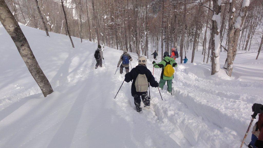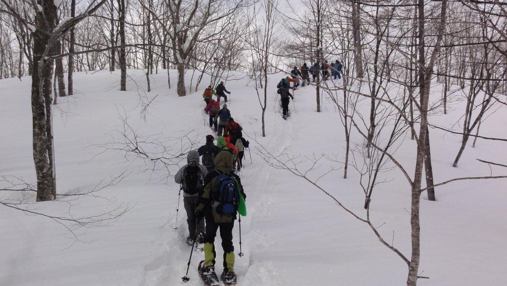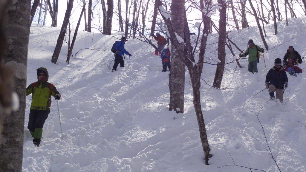 ゲレンデを離れぶなやミズナラの林の中を歩きます。