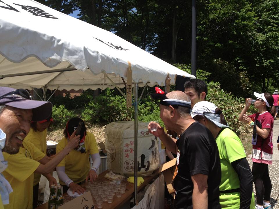 20Kmを過ぎて残り800mのところになんと八海山のお酒のサービスです。マラソンでこんなのは無いでしょうが何せグルメマラソンです。ぐいと一気に飲み干してゴール目指します。
