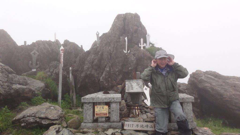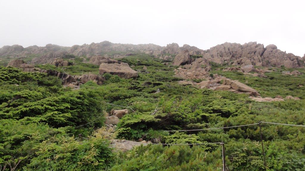 登るときは見れなかった岩の山容が少し見れましたがあっという間にガスに覆われてしまいました。