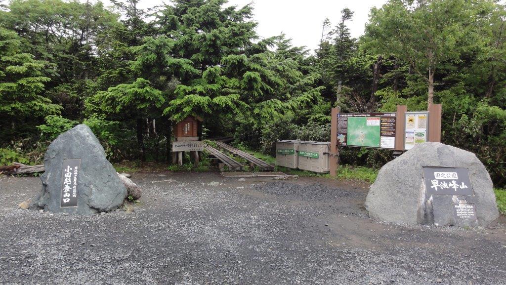 7月8日5:30宿を出発し前日下見をしておいた駐車場へ車を置き、小田越登山口監視センターで簡易トイレを緊急用に購入して登山開始です。小雨が降ってきましたが早池峰ウスユキソウを見られるところまで先ず登ることにしました。