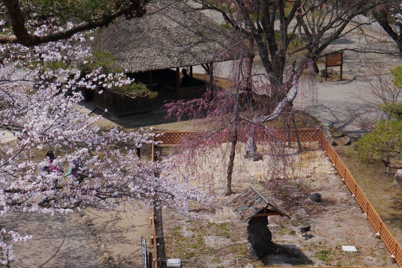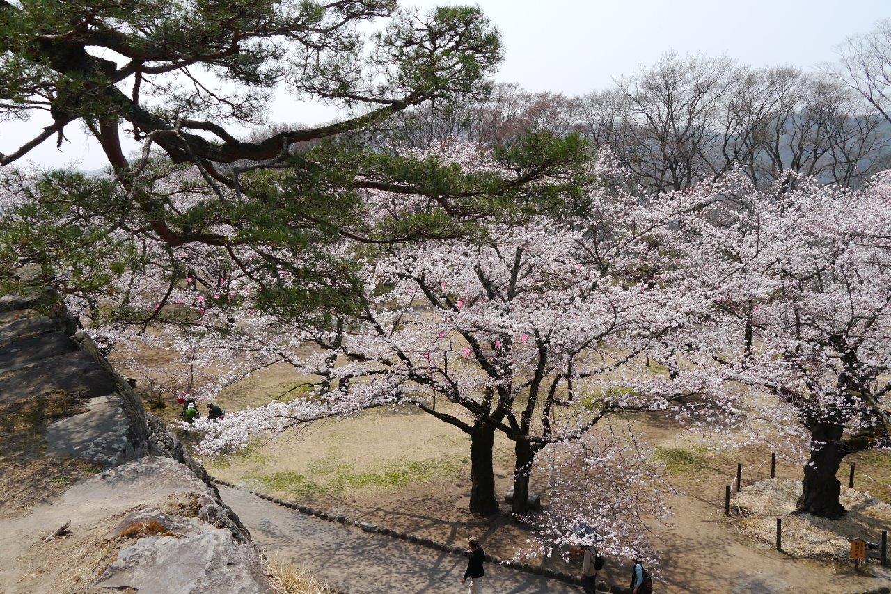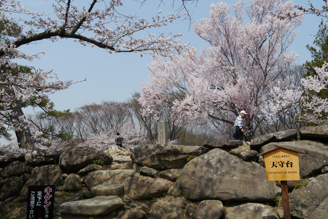 天主台に上がって上からの桜見物をしました七~八部咲きで見事でした。