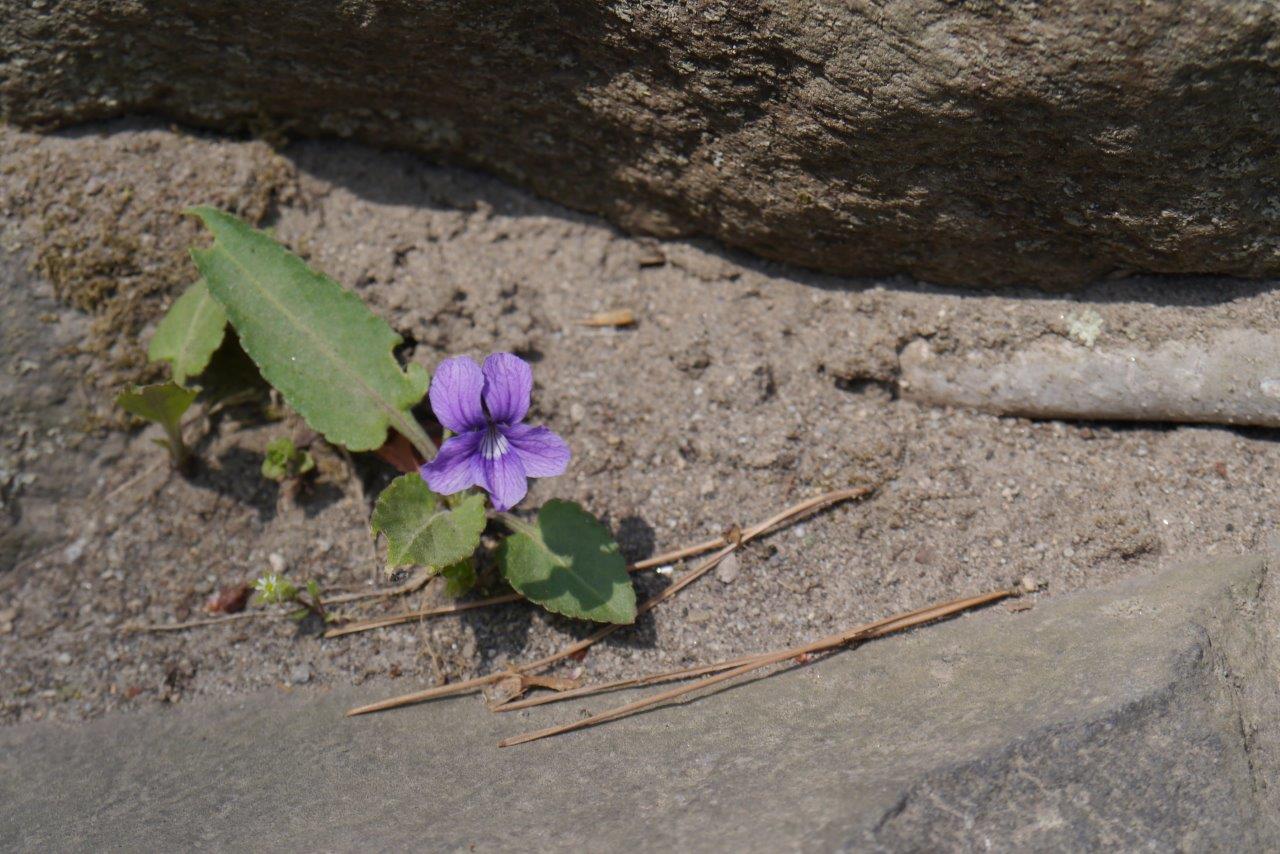 最後の写真は石垣の下に咲いていたコモロスミレです。