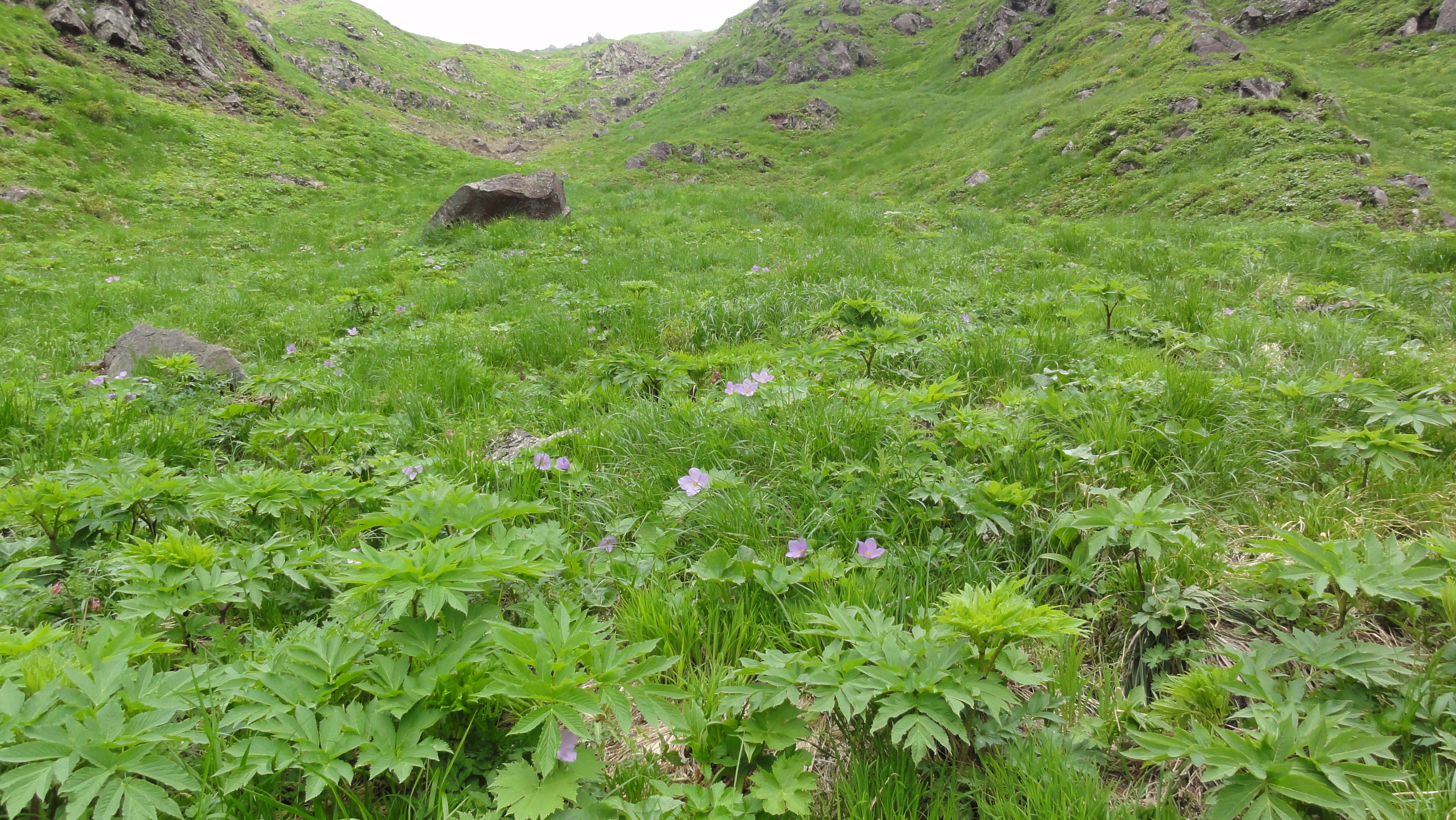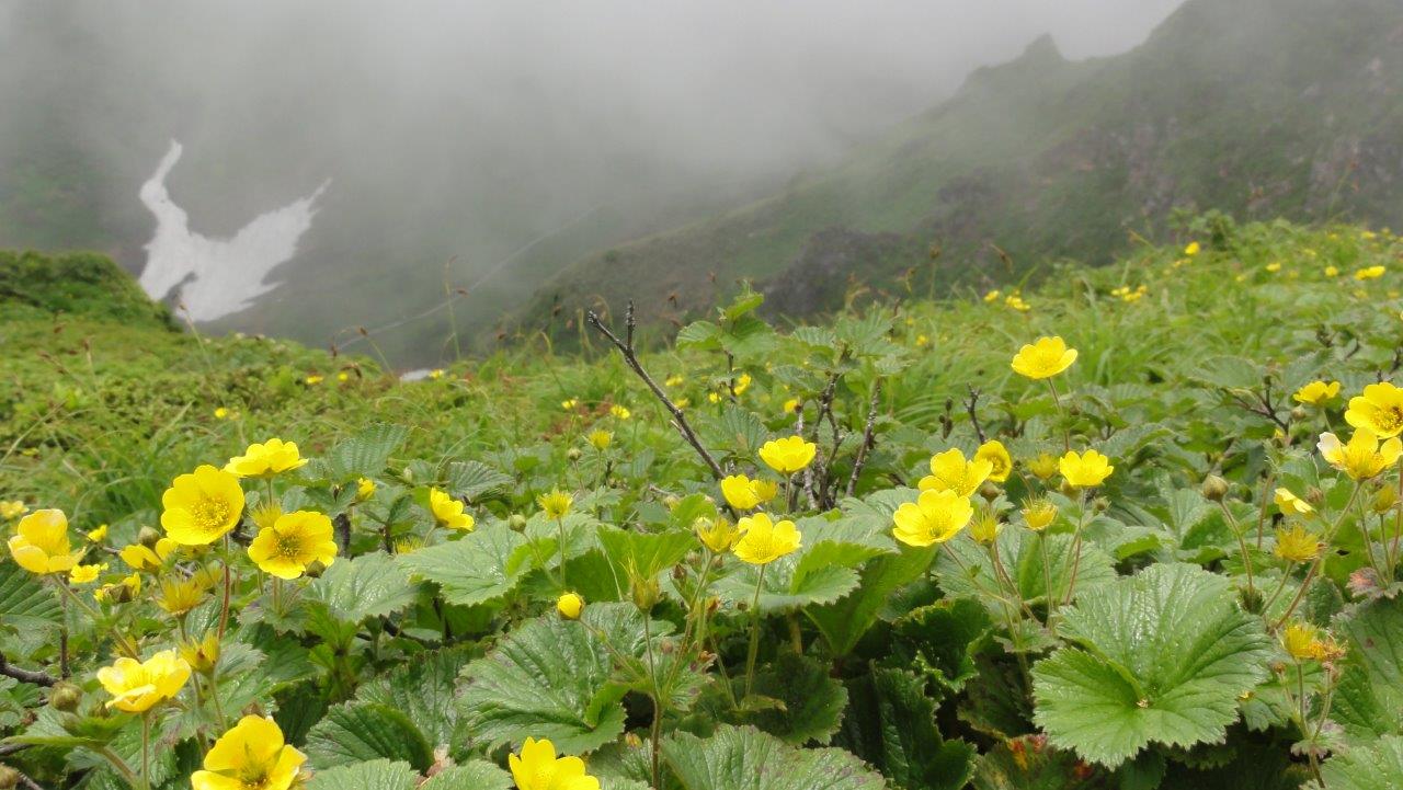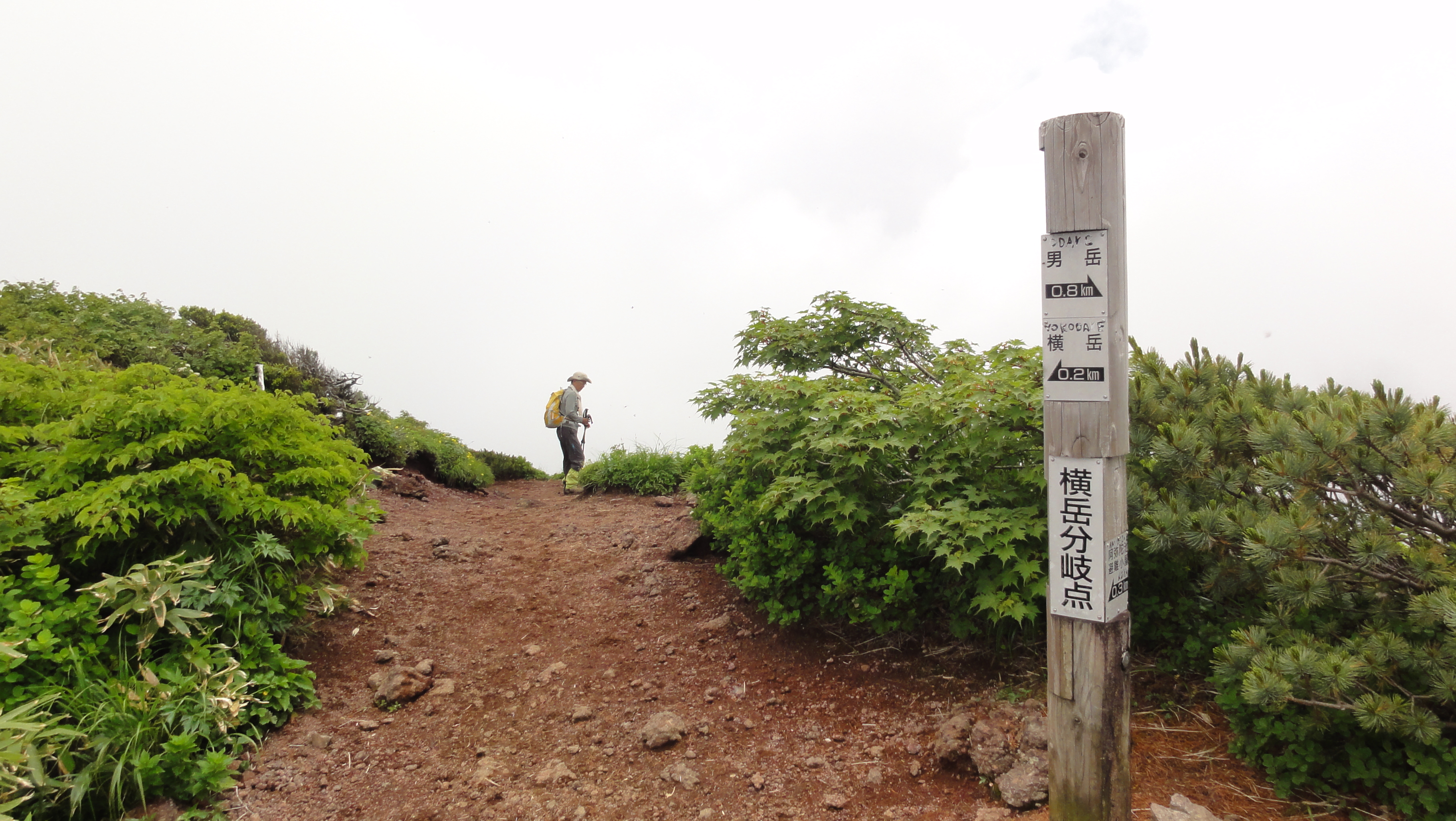 ミヤマキンバイでしょうかシナノキンバイでしょうか?ハクサンチドリやショウジョウバカマも競って咲いています。そして女目岳(おなめだけ、1637m)、男岳(おだけ、1623m)ぬ分岐の鞍部へでます。