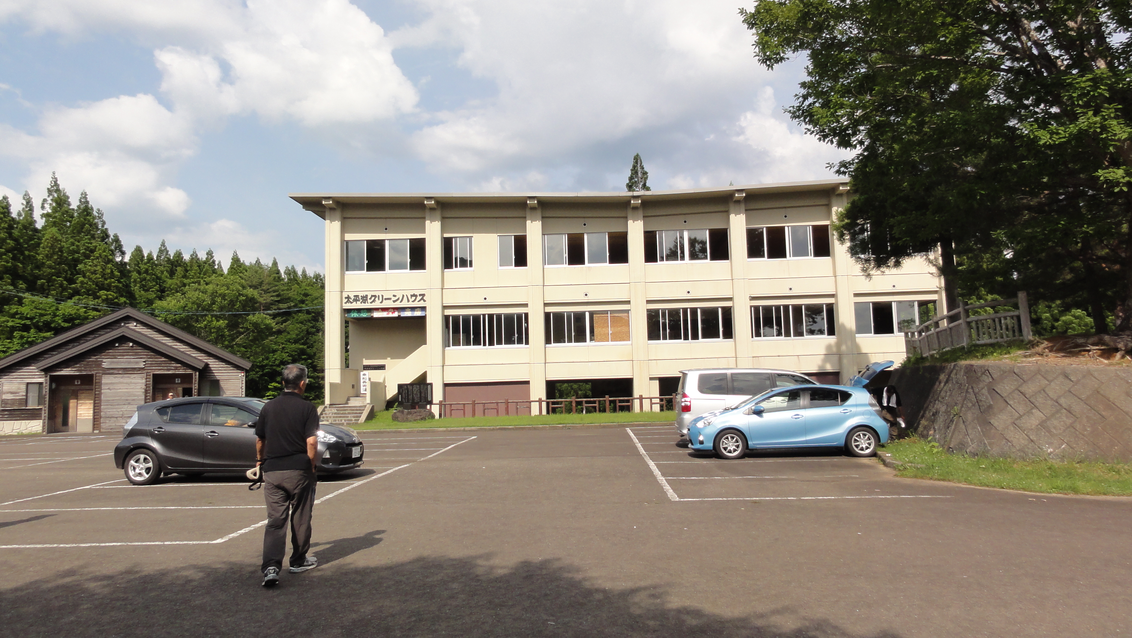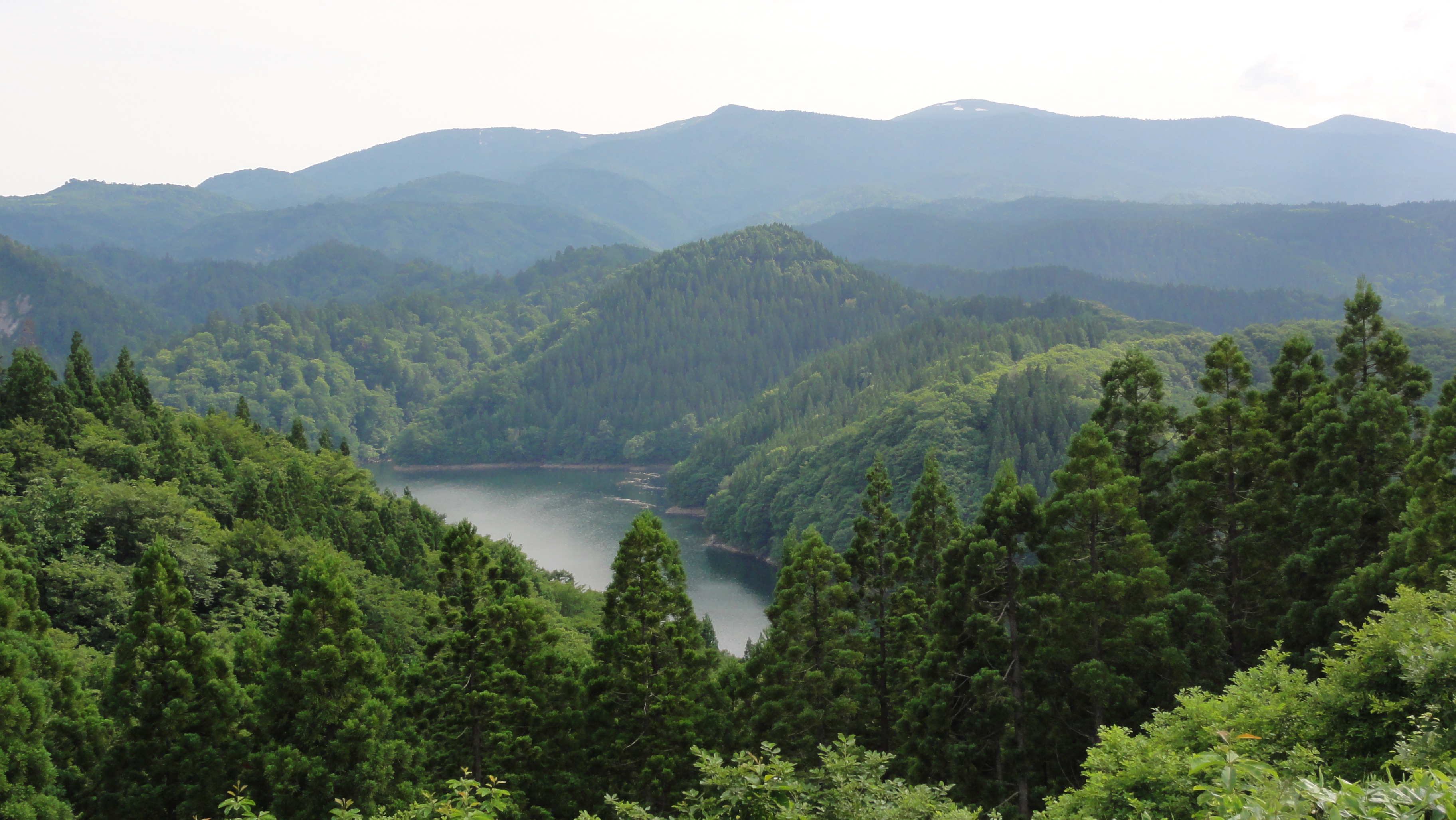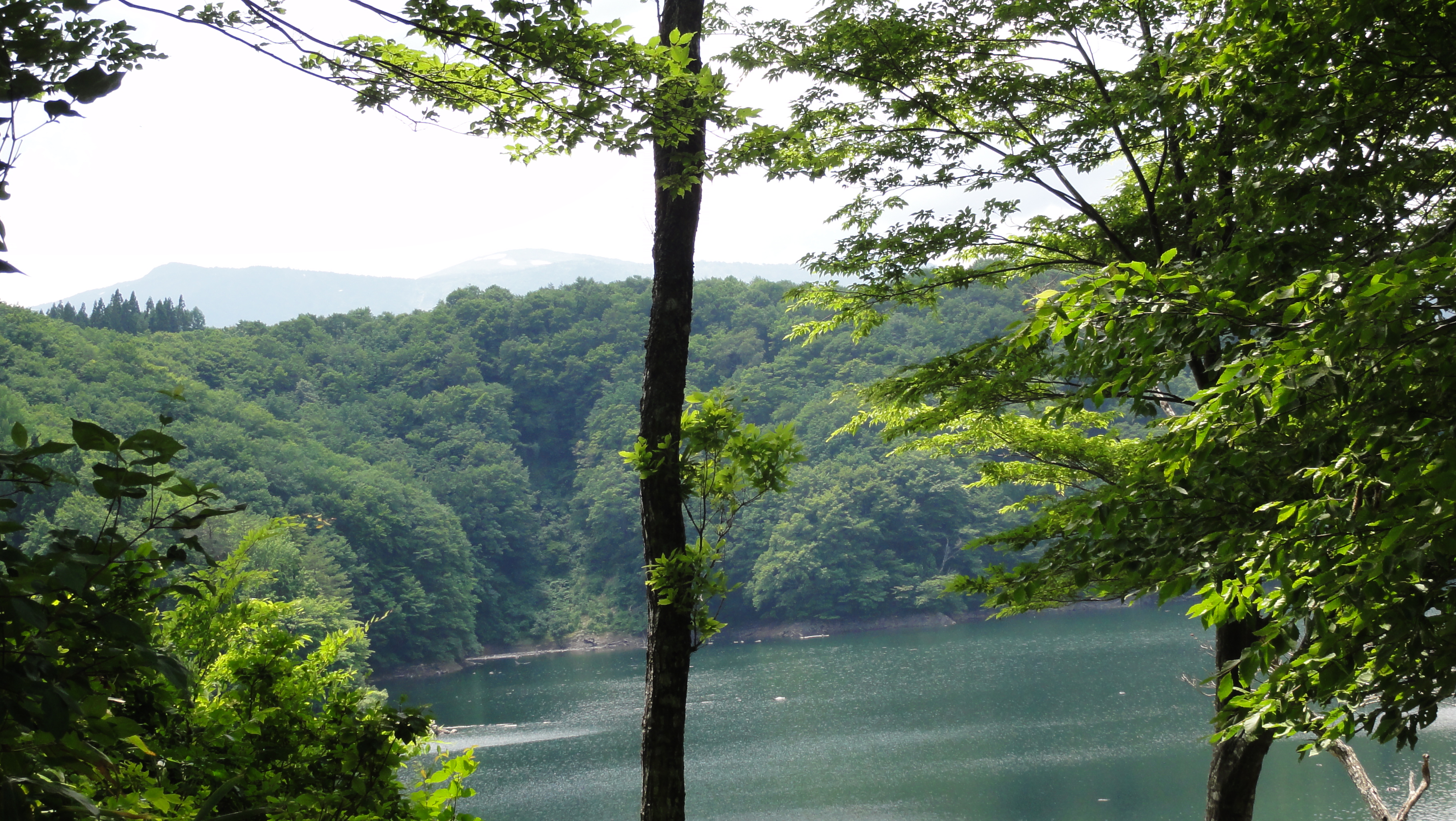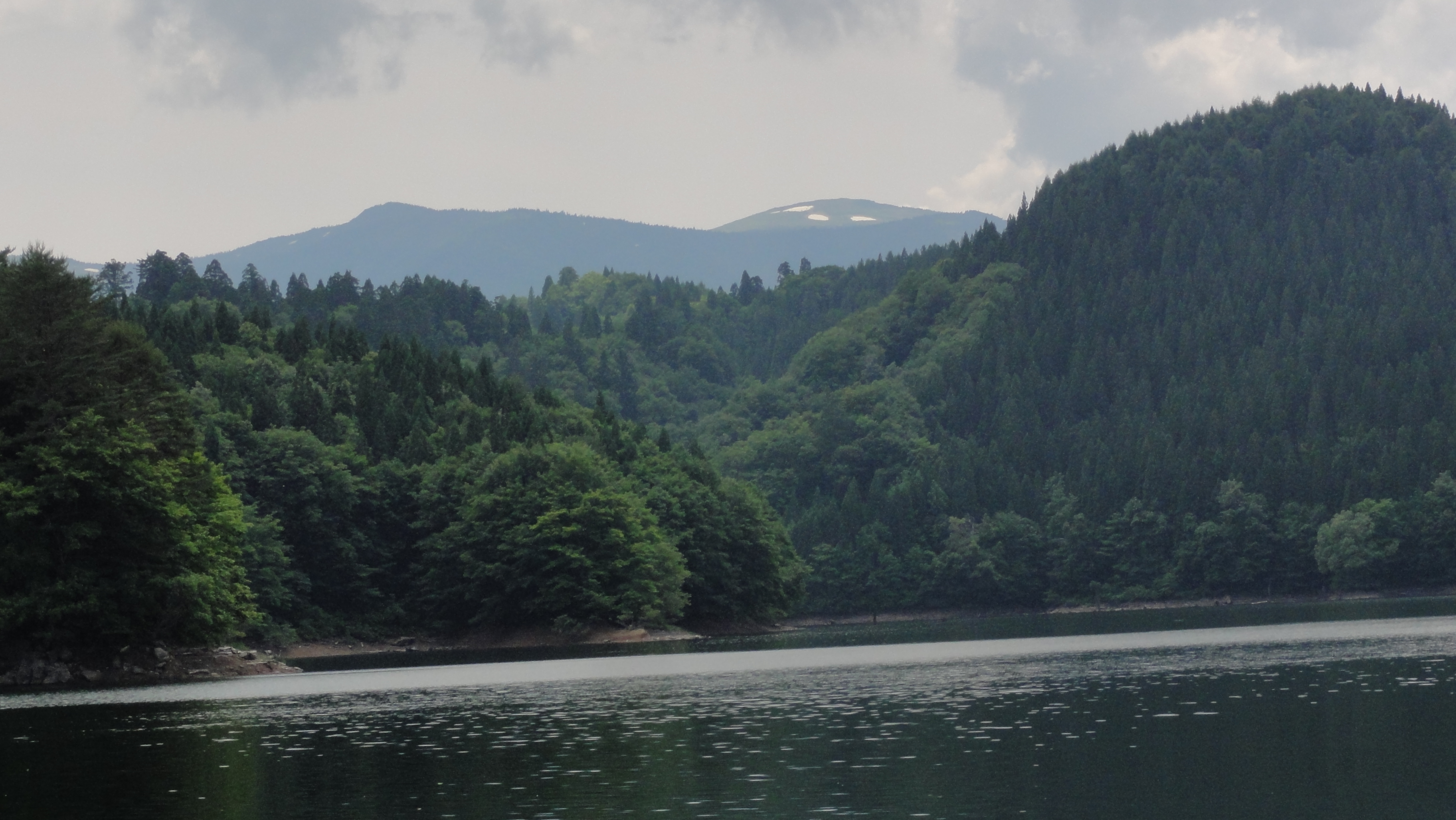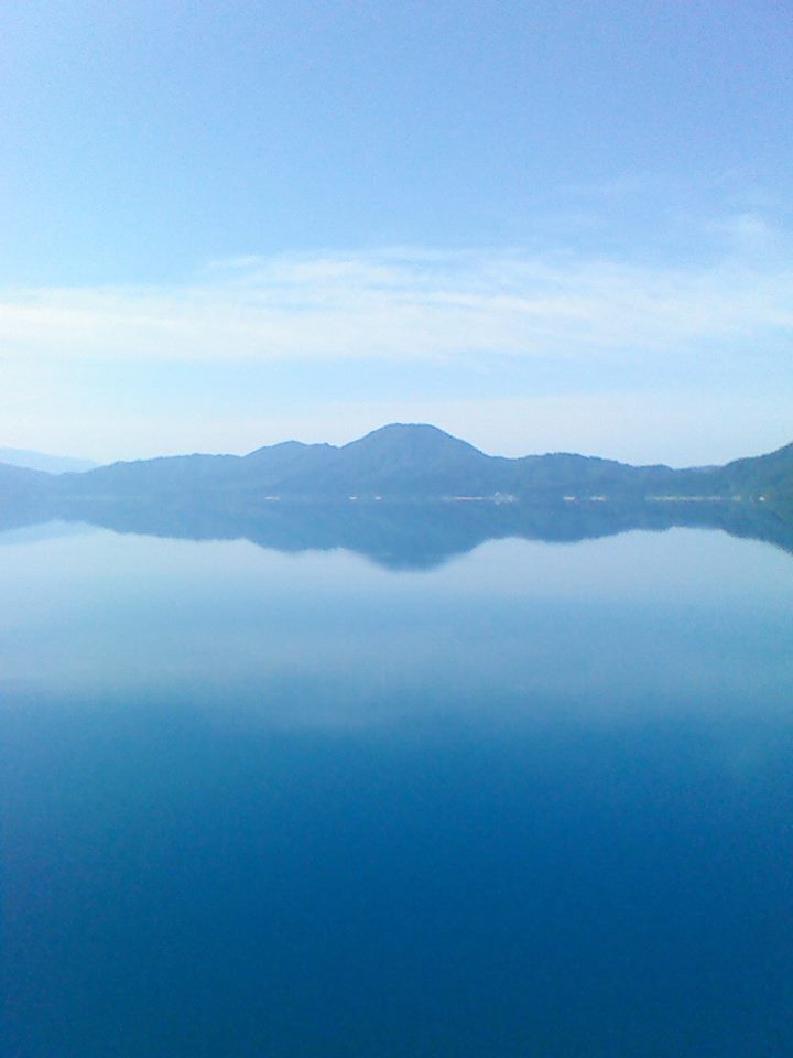 そして森吉山麓の大平湖に到着です。ここから湖と明日昇る森吉山が見えます。