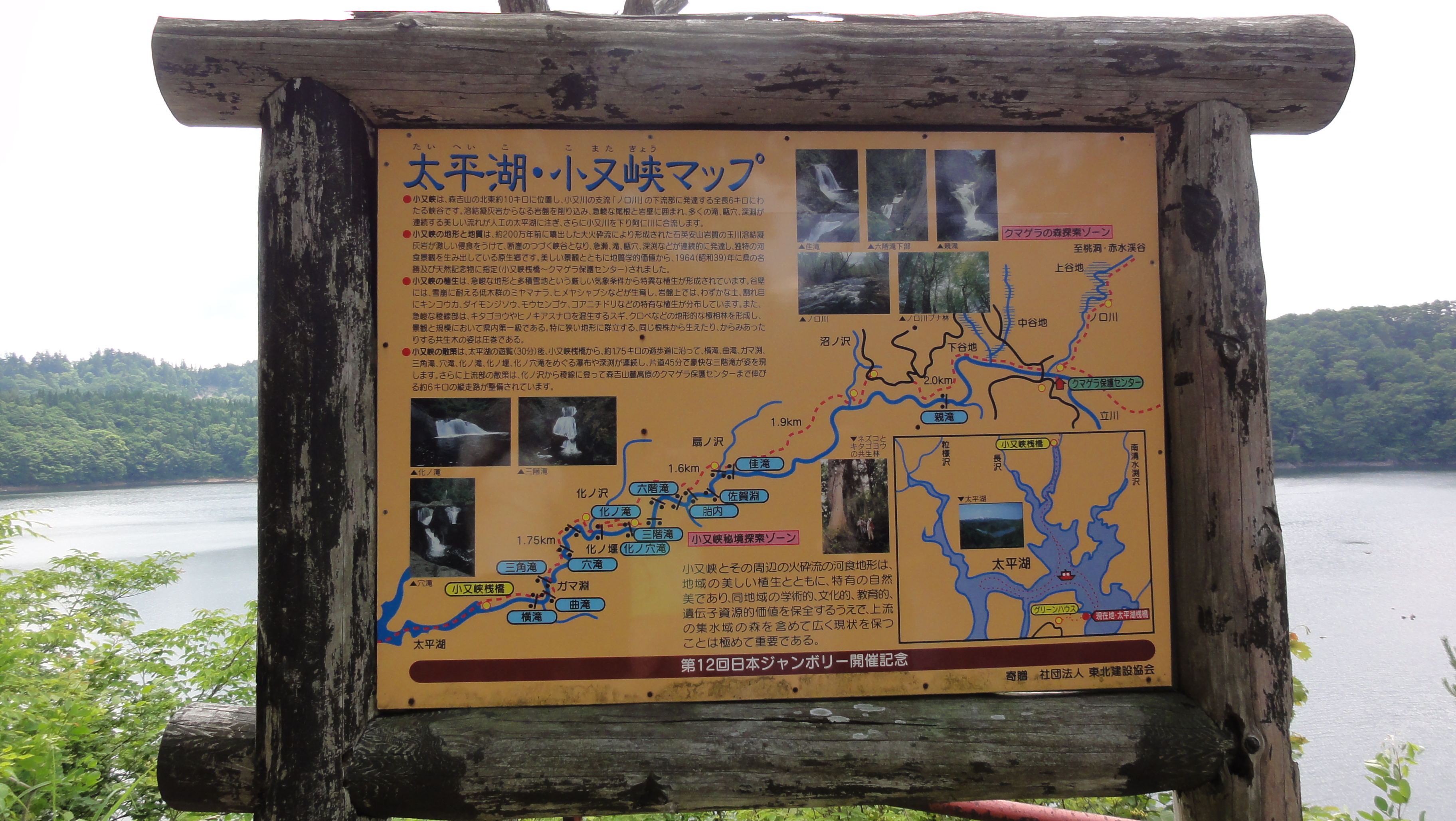太平湖は、森吉ダムの建設に伴って出来た周囲30km、面積195ha、深さ58mの人造湖です。森吉山東麓のノロ川原生林を源として大小100余りの瀑布、おう穴、深渕からなる原生林で、秋田県の名勝天然記念物に指定されています。(太平湖/小又峡のHPはこちら)