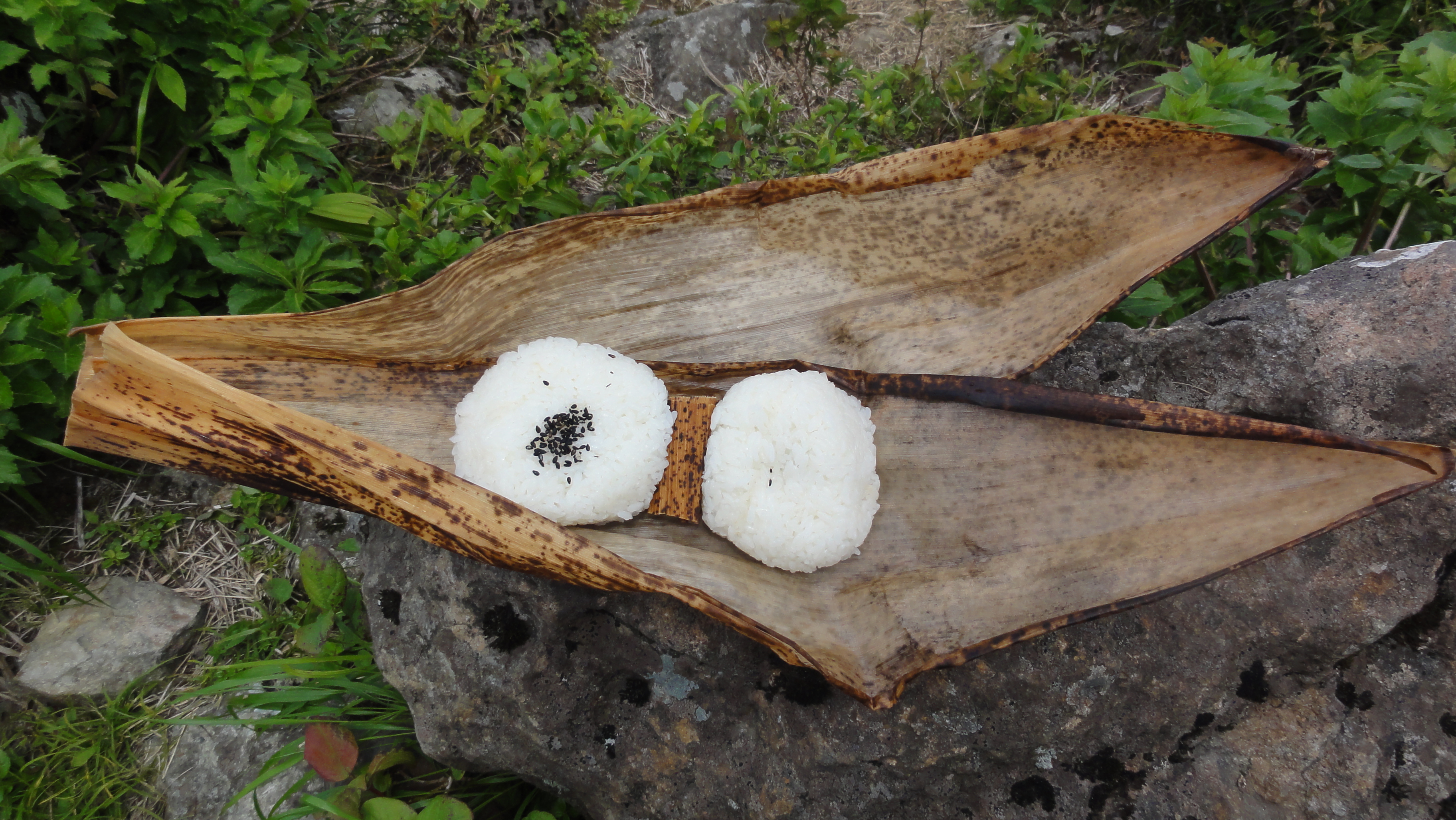 淀で作ってもらったおにぎりは特大2個です。竹の皮に包まれておりゴム輪でなく紙紐で結ばれていました。もしも風なので飛ばされても自然に帰る素材だからやさしいですね。心配りに感心しました。昼食が終わったら下山です。今日はピストンなので元の道を戻ります。またまたお花畑を堪能しながらです。